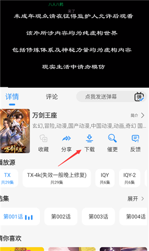 2、进入播放页面点击下载就可以缓存想看的剧集
