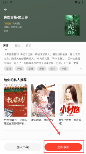 4、点击“立即收听”按钮,开始沉浸在精彩的故事叙述中,尽情享受聆听的乐趣。