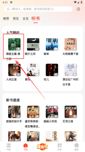 2、选择“听书”功能,开始探索丰富的听书内容,享受便捷的听书体验。
