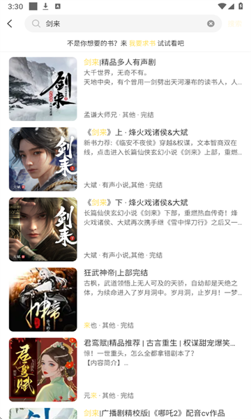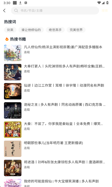 1、囊括了不同的书籍作品,可以轻松进入其中搜索小说听书