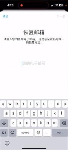 6、在文本框中输入更改的电子邮箱,确认无误后点击右上角的“下一步”,这样邮箱就更换完成了。