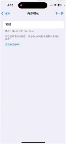 4、输入两部验证的密码,然后点击右上角的“下一步”。