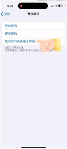 5、点击“更改密码恢复电子邮箱”选项进入邮箱修改界面。