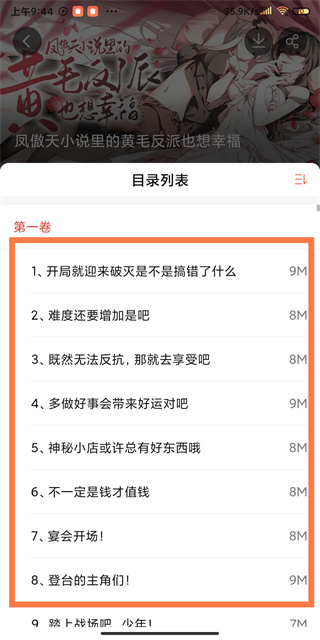 3、在目录列表页面,即可查看该有声作品的详细目录内容。