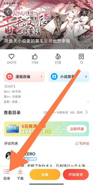 2、在作品详情界面,点击左下角目录选项,进入目录列表页面。