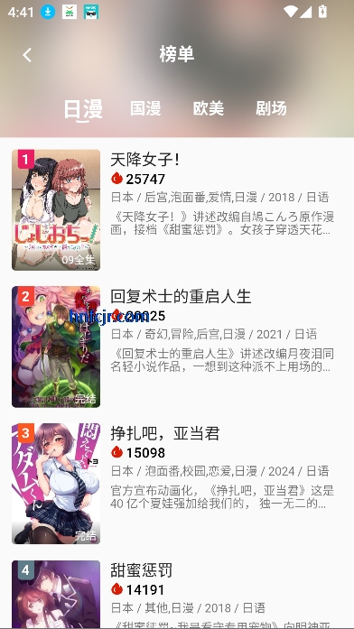 3、提供实时更新的热度排行榜单推荐应用内设有实时更新的热度排行榜,展示了当前最受欢迎的番剧,帮助你了解哪些作品正在流行,便于追看热门剧集。