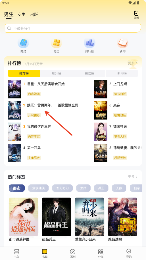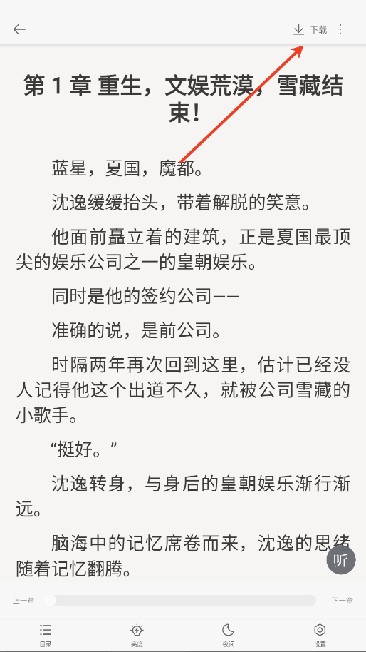 1.在书城中找到想下载的小说,点击进入阅读界面