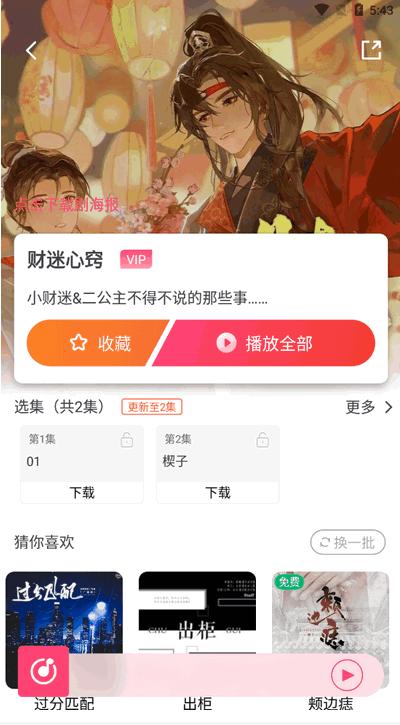 广泛种类:广播剧种类丰富,用户可以点击自己想要看的剧集进行播放。
