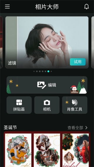 1、在软件首页就可以开始选择编辑修图或者拍摄了。