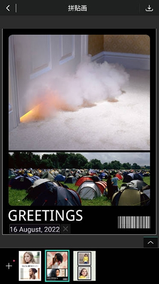 4、进入拼贴画页面,选择模版。点击左下角的加号,就可以添加图片了,还可以修改图片位置。