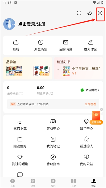 1、在本站下载安装软件,打开番茄小说我的界面, 然后点击上面的设置图标