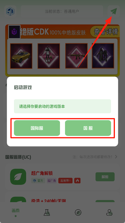 2、点击右上角的小飞机,选择我们需要优化画质的版本。