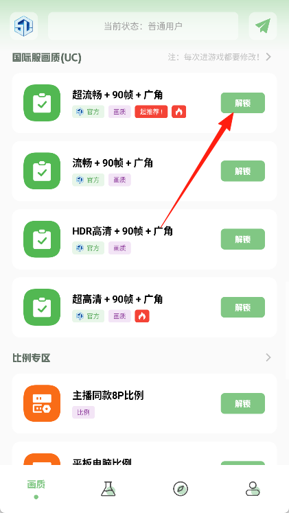 5、点击“解锁”按钮,将所选的画质方案应用到游戏中。