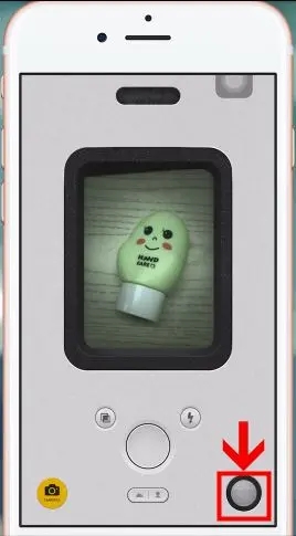 3、如果想换前置摄像头拍摄的话,点击大圆点下方的图标就是切换摄像头模式,如下图红色标注。