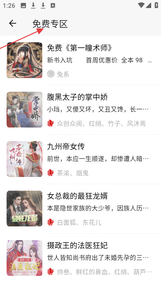 4、免费专区界面呈现免费第一瞳术师等,提供新书优惠资讯,让用户无需付费畅享丰富有声书资源。