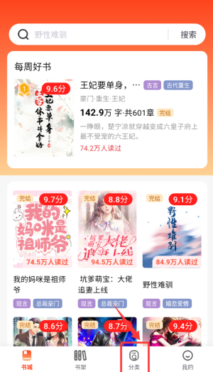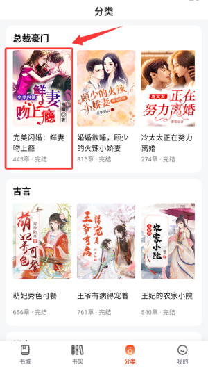 2、在分类里面找到总裁豪门,在选择喜欢的书籍。