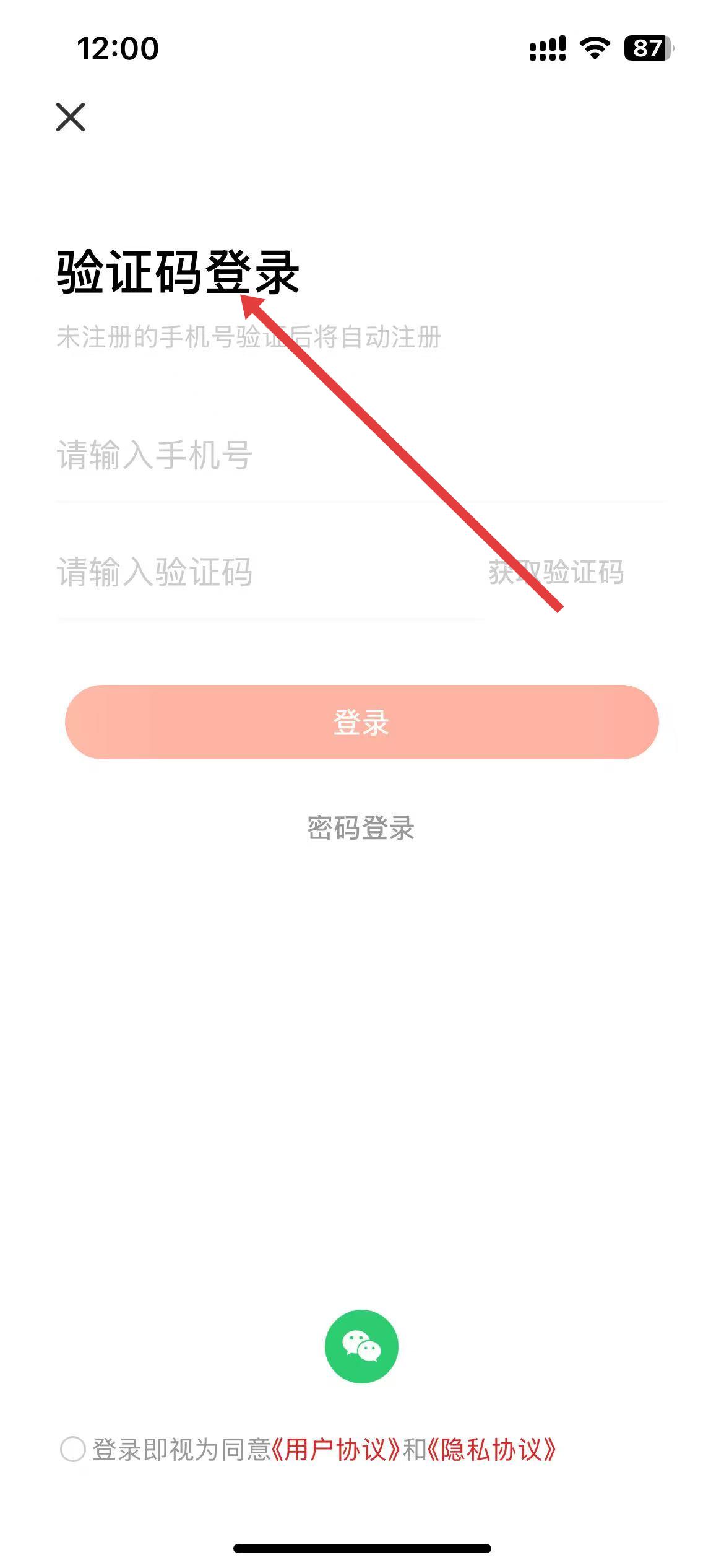 3、点击我的进入个人中心界面,若未登录,可点击登录入口,选择验证码登录或微信登录方式。