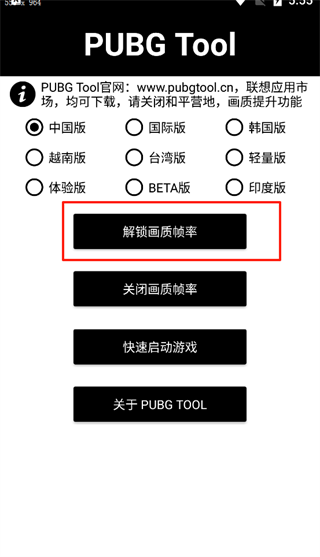 2、点击主界面的“解锁画质帧率”,就可以立马体验了;