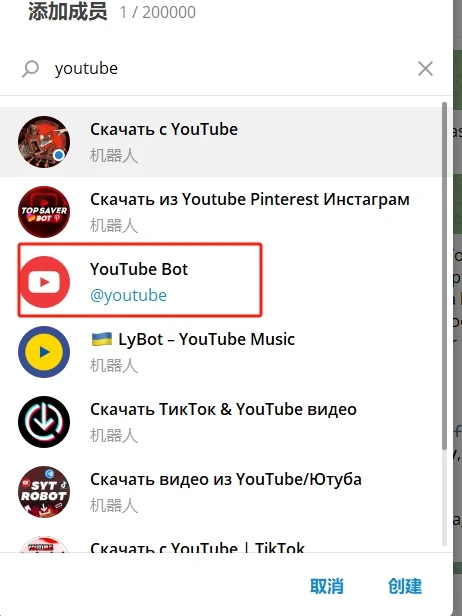 随便找一个机器人(现在有很多官方在Telegram上有机器人),搜索并且选择机器人,点击创建即可成功。