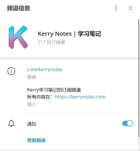 输入频道名称,然后选择是公开频道还是私密频道。公开频道任何人都可以搜索到,而且不用加入频道就能看到频道内的消息。而私密频道则需要通过邀请才能加入。然后输入一个用户名作为频道的URL,其他人可以通过链接加入频道。例如t.me/kerrynotes,这个用户名是唯一的。