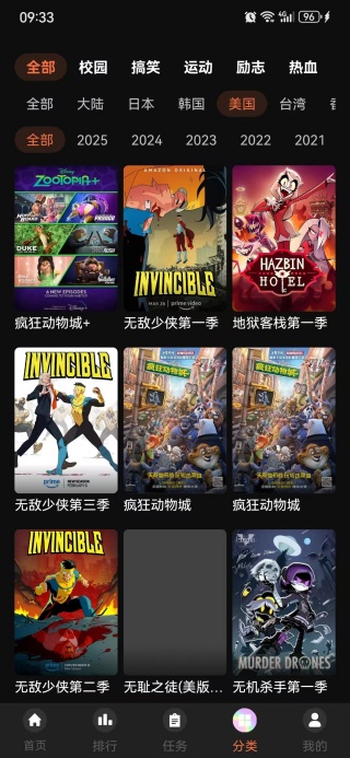 2、点击美国动漫进入,可以看到优质的动漫推送,让您点击查看。