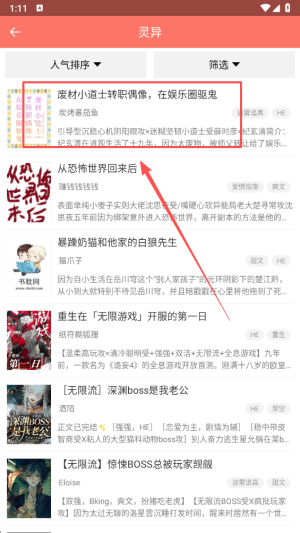 4、浏览选定类别中的作品,以便找到最吸引您的小说进行阅读。