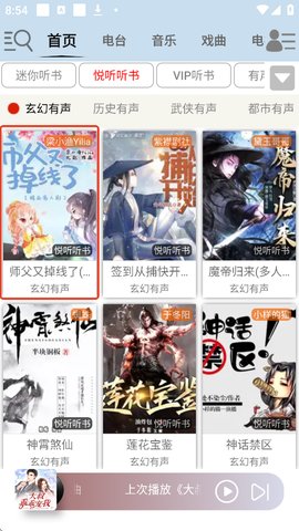 2.例如选择悦听听书,在页面选择你要听的书籍