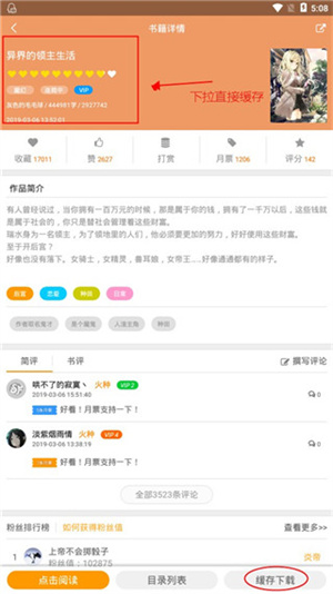1、选中一本小说后,点击下载,然后直接返回,无需付费;