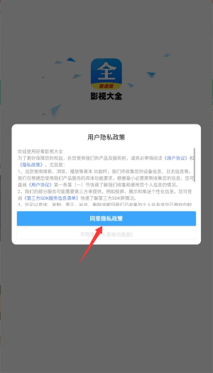 1、初次启动应用时,需阅读并同意用户服务协议及隐私条款,点击确认后进入主界面。