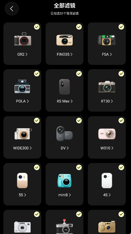 2、左右滑动选择自己喜欢的相机滤镜风格。