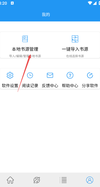 2、在个人中心里面,我们需要点击本地书源管理功能;