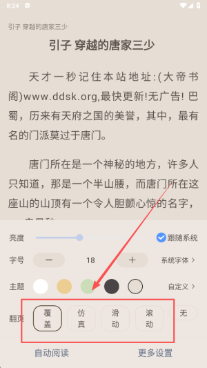 4、自定页面:亮度、字体、背景、翻页效果随心调,专属阅读氛围即刻拥有。