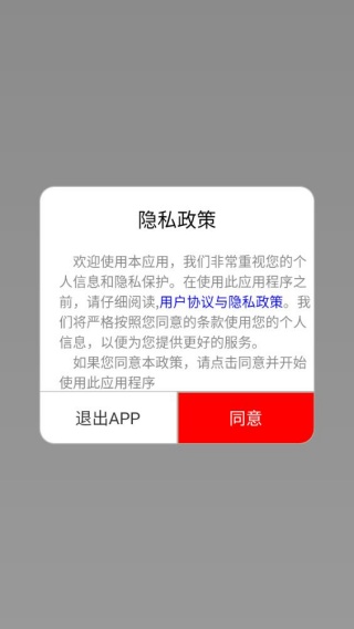 1、下载安装软件后打开,弹出隐私政策,点击同意进入。
