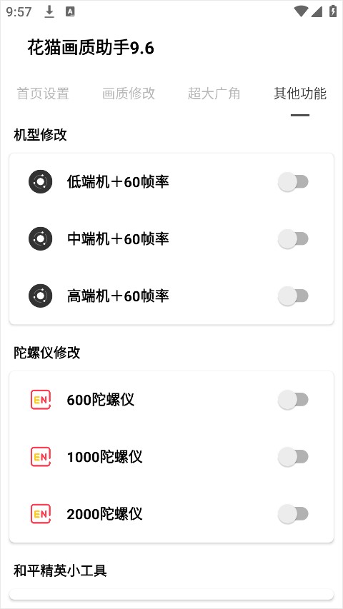4、在其他功能板块中,还可以进行机型调整、陀螺仪修改,以及一些地铁逃生手游专用的小工具,进一步优化游戏体验。