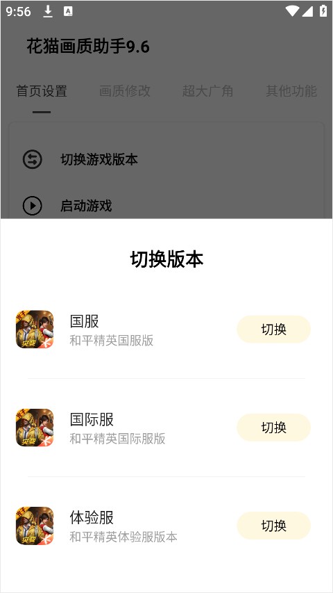 1、打开软件后玩家可以使用切换游戏版本、启动游戏、修复闪退、以及一键恢复画质等便捷功能。