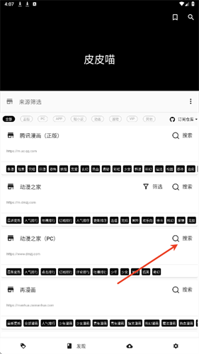 5、等待订阅成功,再看“发现”里面就会出现很多漫画平台了,比如腾讯漫画、动漫之家、布卡漫画、漫漫漫画、可米酷等。