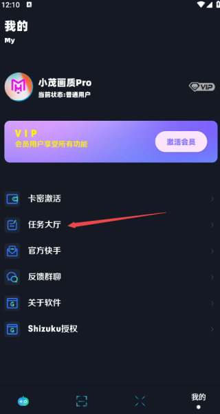 2、或者我们可以点击右下角的我的,进入到个人中心界面,在个人中心里面,点击任务大厅,从这个入口也可以进入;