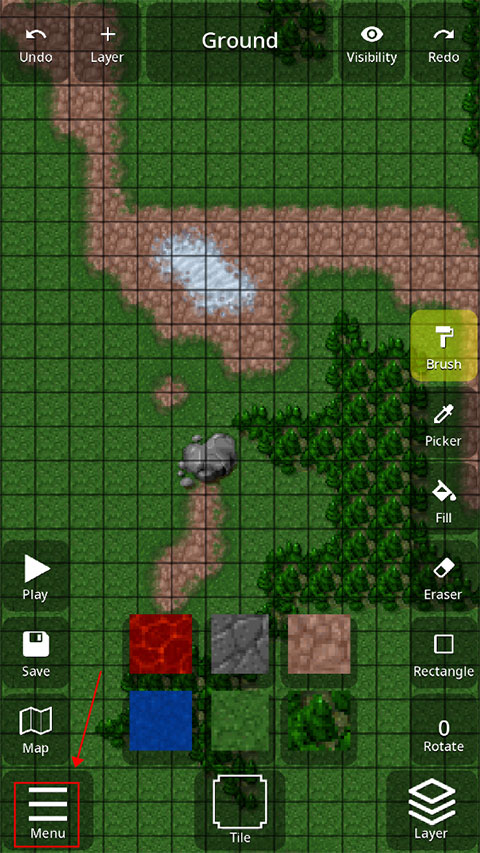 4、最终阶段切换至Ground层,将右上角图层可见模式设为“堆叠”或“单层”,双指缩放至全局视角,调整整体布局;截图生成预览图后,通过菜单→链接→复制至“Rusted Warfare Maps”文件夹完成导入;**强烈建议同步在文件管理器中重命名map01.tmx及其对应缩略图,防止后续覆盖丢失成果;**
