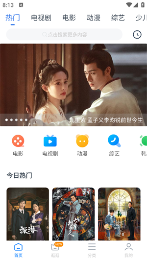 3、你可以通过上面的分类看到电视剧、电影、动漫、综艺等分类。
