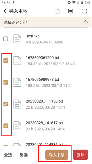 3、选择需要导入的文档,点击“导入书架”即可
