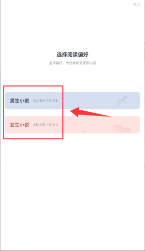 2、进入首页后,可依据偏好点选“男生”或“女生”专属小说分类。