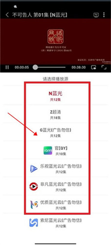 2、找到想看的影片后,点进去可以随意切换播放源,找到流畅的观看选项。
