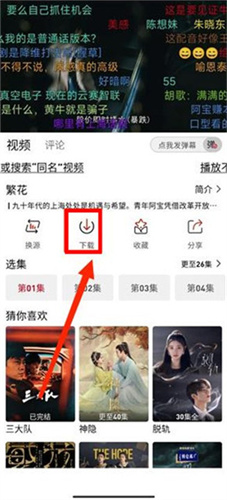 4、在播放的小窗口里,点击一下下载图标,就能轻松把电影下载到设备上。