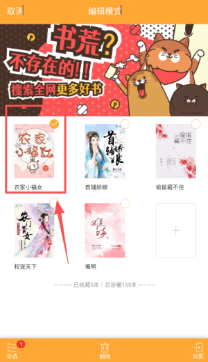 3、你可以创建自定义文件夹,比如“网文”或“经典”,将书籍分类整理存放。