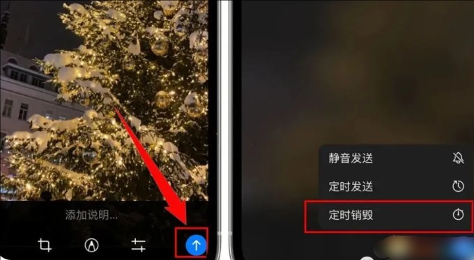 2、长按照片右下角的箭头,点击定时销毁