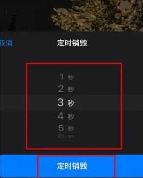 3、选择好定时销毁的时间,点击“定时销毁”,这样一个阅后即焚的照片视频就成功发送给对方了