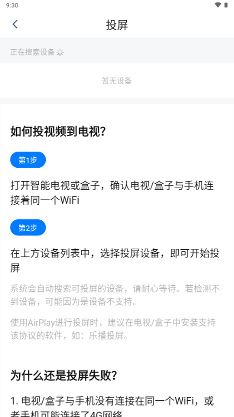 这个时候只要手机与投屏设备连接同一个wifi就可以完成投屏了