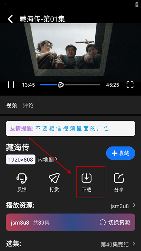 3、在播放界面或剧集详情页,点击“下载”按钮。选择需要下载的集数,等待缓存完成后,可在“我的下载”中离线观看。