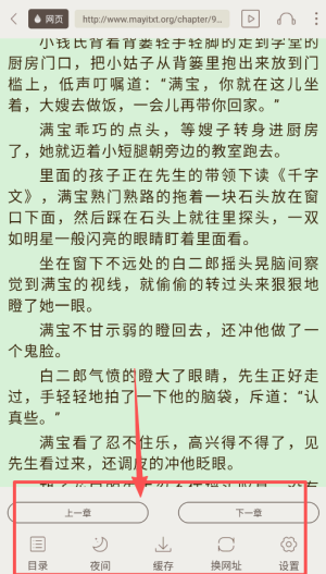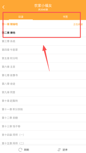 1、开始阅读后,轻点屏幕中央,界面上下会出现功能栏和章节进度条。