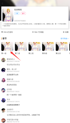 3、进入漫画详情页后,选择需要阅读的章节即可开始浏览高清漫画内容。
